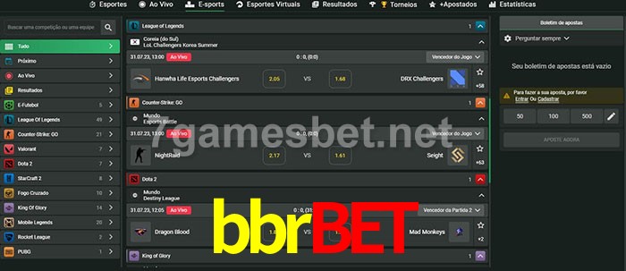 O bbrbet oferece uma grande seleção de opções de apostas em e-sports com probabilidades competitivas